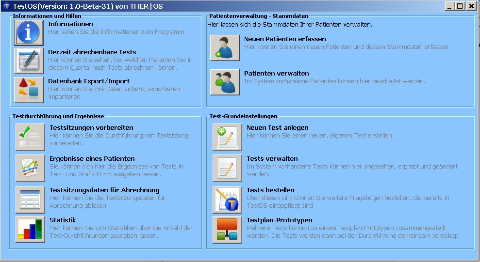 - Automatische Abrechnung: Bei TestOS als Zusatzprogramm zu einem Praxis-Abrechnungsprogramm werden die Daten für die Abrechnung direkt in das Abrechnungsprogramm übertragen. Sonst können Sie die relevanten Daten selber aus einer Tabelle für die Abrechnung übertragen.